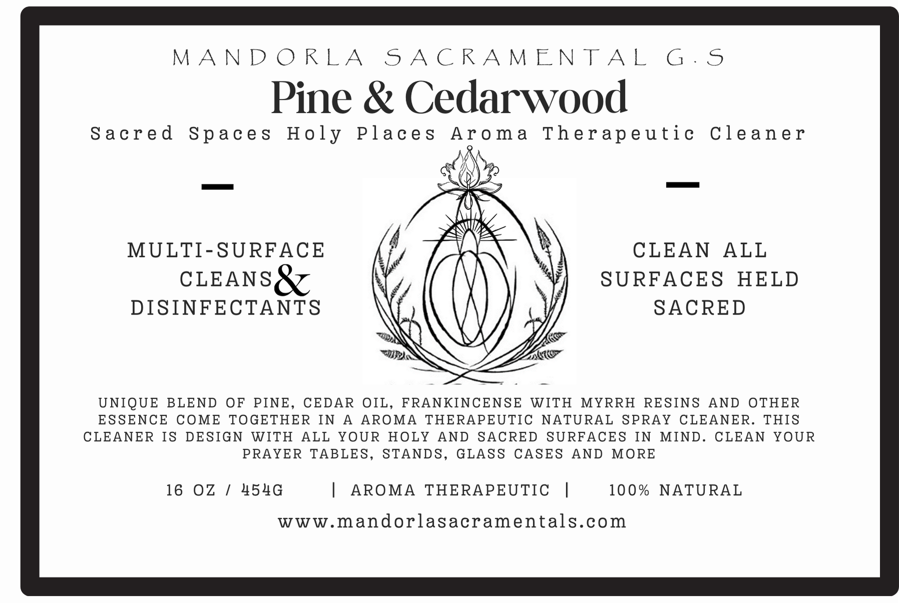 This unique blend of Pine and Cedar oil, Frankincense with Myrrh resins and other ecenssical oils and essence come together in a aroma therapeutic natural spray cleaner. This cleaner is design with all your holy and sacred surfaces in mind. Clean your prayer tables, stands, glass cases and more. Comes in a 16.oz spray bottle.